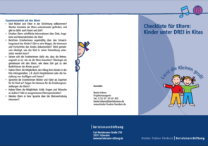 Gut gestartet ist halb gewonnen! Unter diesem Motto wurde im vergangenen Jahr zum ersten Mal der KiTa-Preis „Dreikäsehoch“ von der Bertelsmann Stiftung verliehen. KiTas als erste Bildungseinrichtung für Kinder gewinnen in der öffentlichen Diskussion zunehmend an Bedeutung....